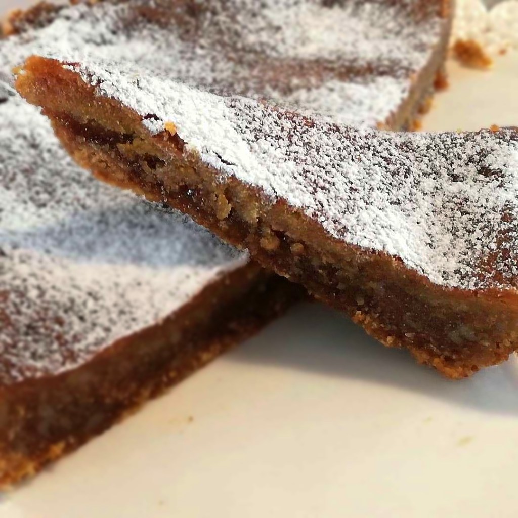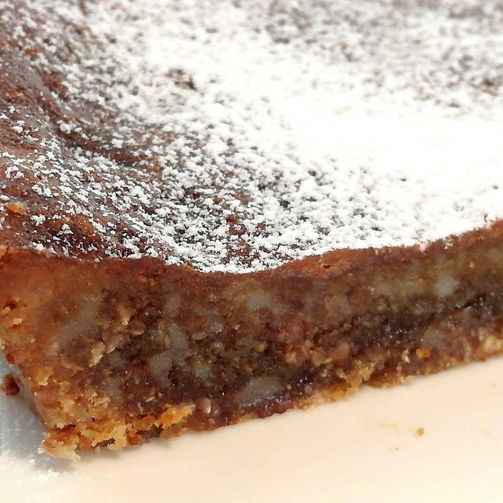 È una torta con un equilibrio di sapori particolarissimo, dovuto all’utilizzo di zuccheri molto diversi tra loro: se avete un palato adeguato proseguite nella lettura, se fate fatica a distinguere i cicoli dall’uva passa demordete.