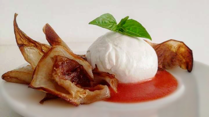Abbiamo spogliato la parmigiana di una serie di passaggi gastronomici riuscendo a trasformare un piatto saporito, condito e complesso in un piatto altrettanto saporito ma semplice e fresco.