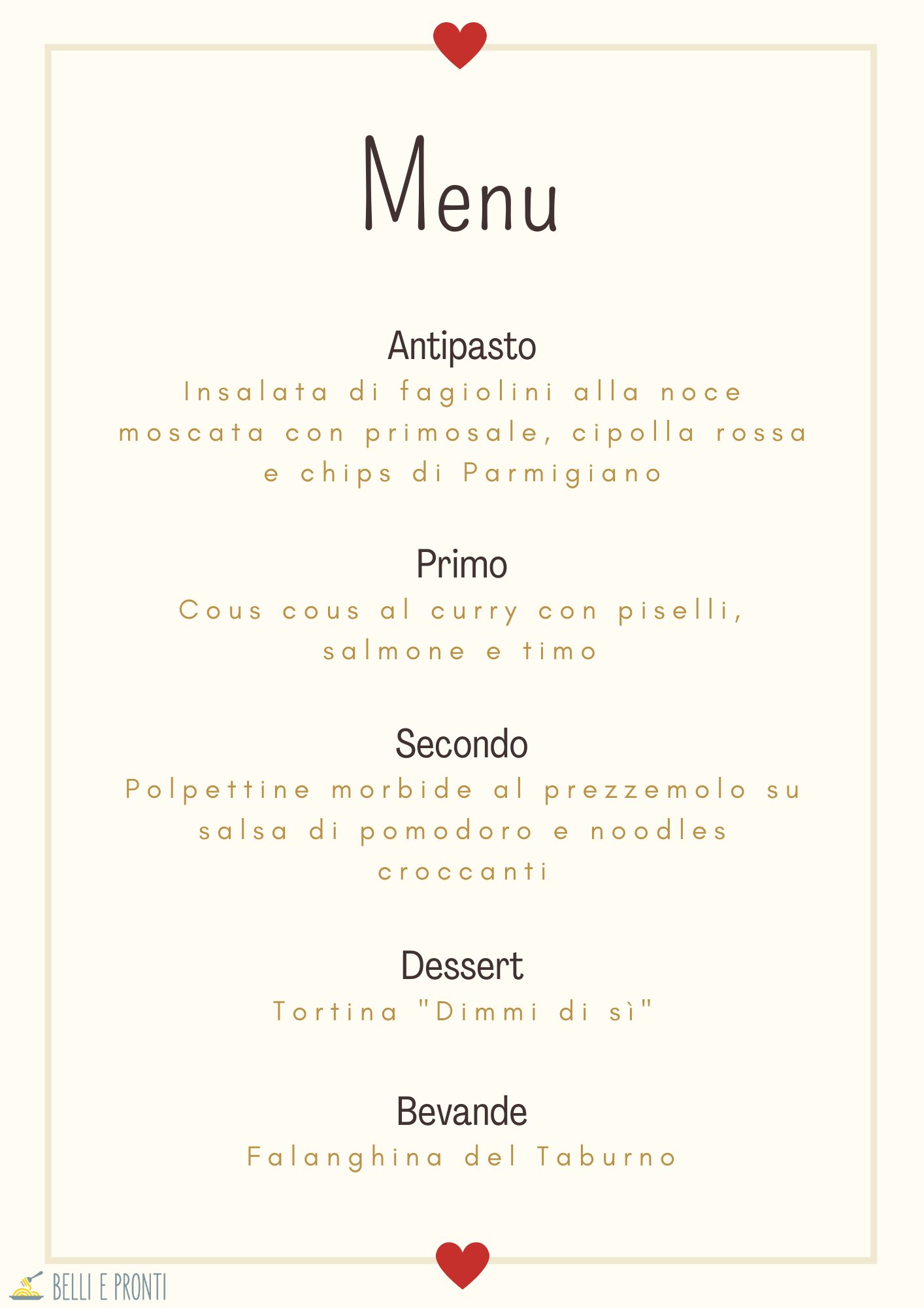 Un menu fresco, leggero, saporito e colorato come la vita che ci aspetta, domani e per sempre.