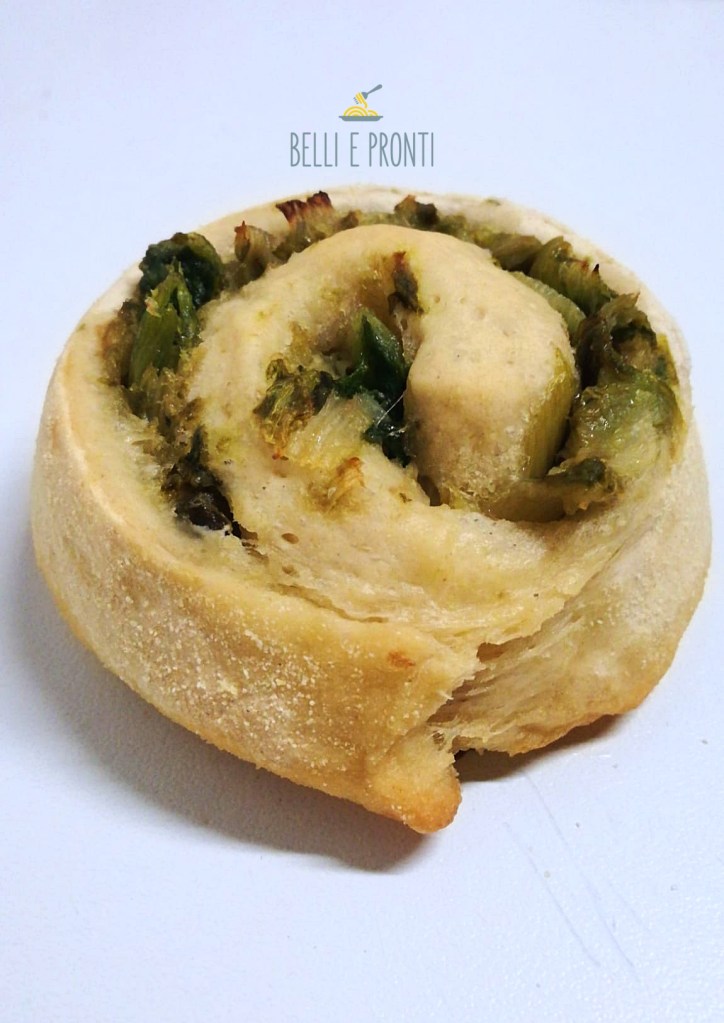 Torniamo alla tradizione gastronomica campana: una torta salata di pasta cresciuta, con scarola, capperi, olive verdi, uvetta e pinoli tostati. Qui in versione monoporzione.