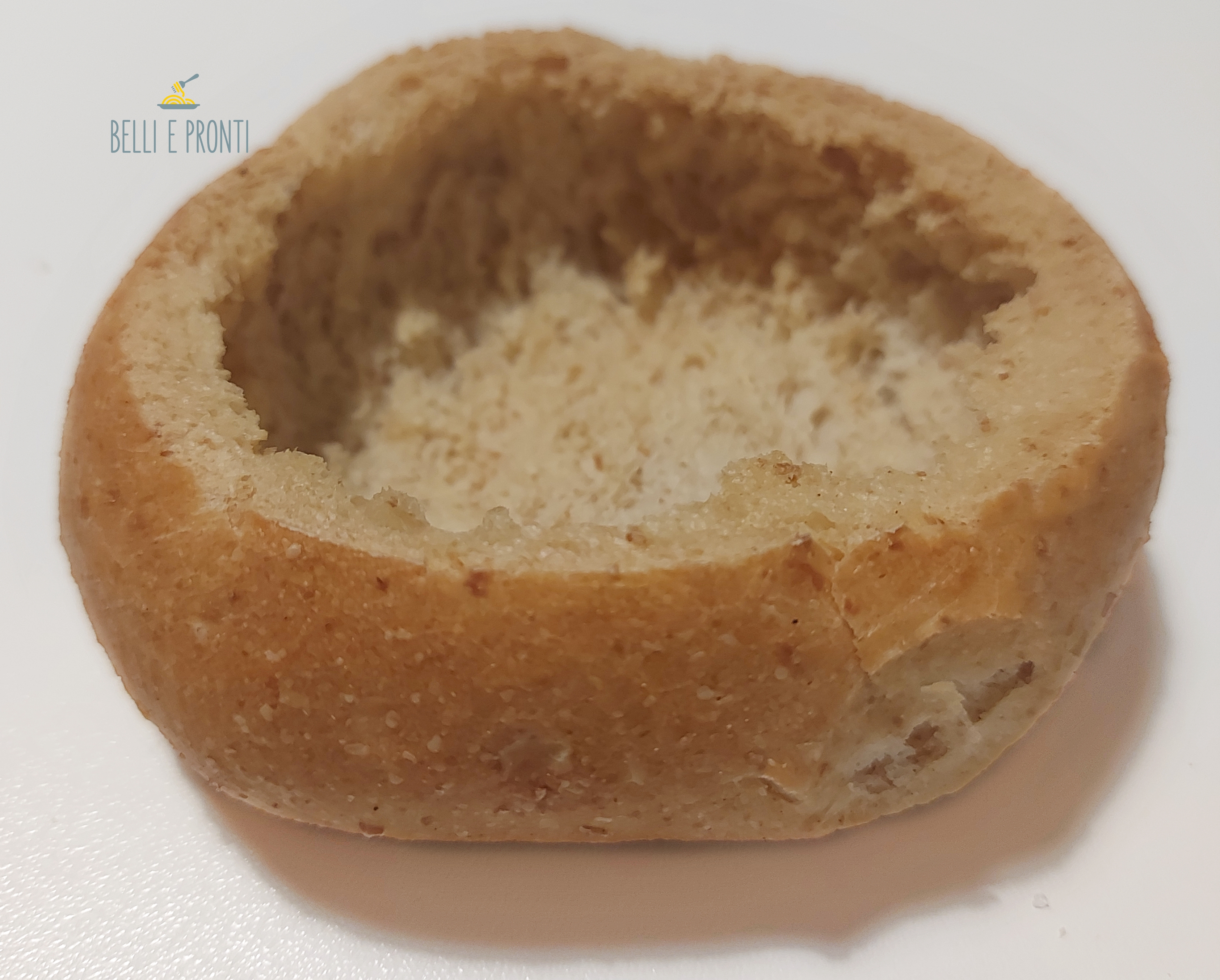 Se non avete i tegamini di pane già pronti, tagliate e svuotate i panini in modo da creare una cavità al loro interno (come in foto), quindi infornateli a 220° per 15 minuti e poi metteteli da parte.