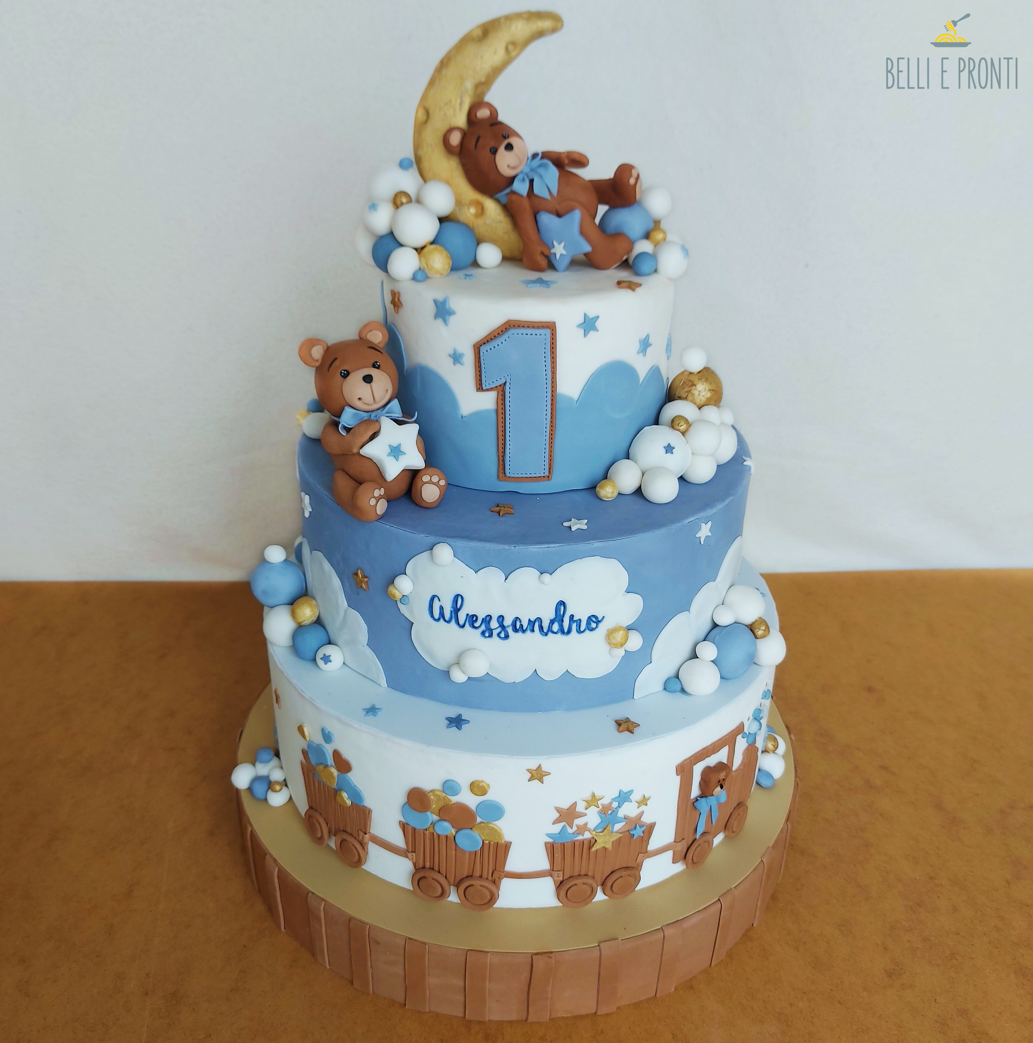 La torta in pasta di zucchero che vedete in foto è stata creata per Alessandro, è una torta per il suo primo compleanno. 🎉 1️⃣ 🎁