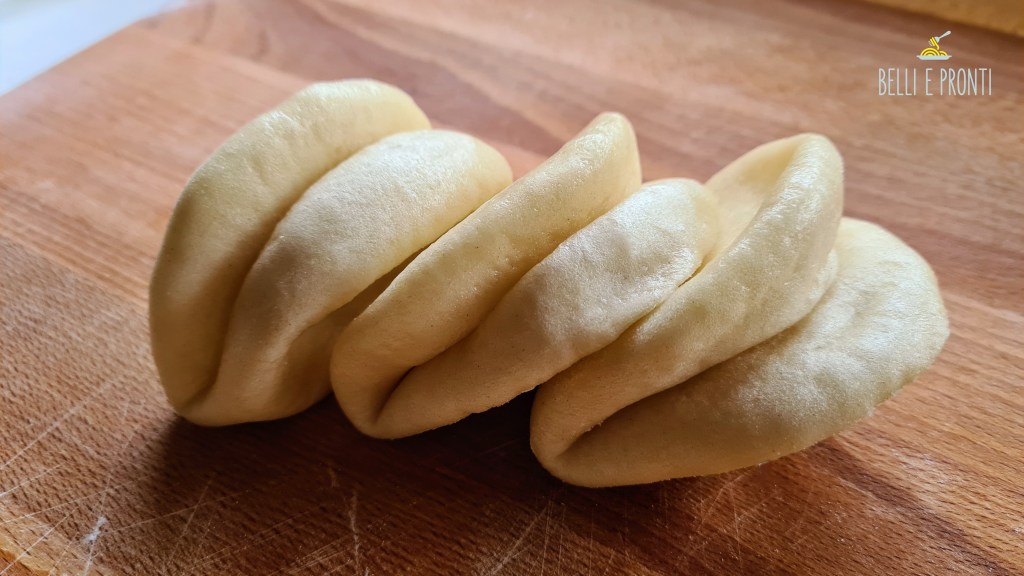 Stendete le palline col matterello, piegatele a metà inserendo in mezzo un pezzetto di carta da forno, e fatele lievitare per mezz’ora.