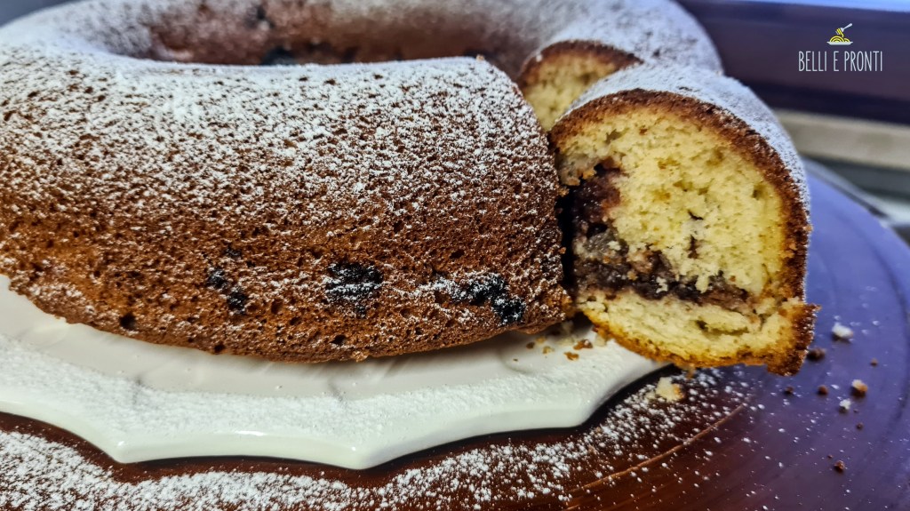 Ciambellone fa rima con colazione, e questo è un classico ciambellone da colazione, perché potete afferrarne una fettina anche all’ultimo momento prima di uscire, anche se siete in ritardo.