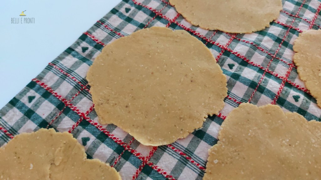 Dividete l’impasto in 6 parti più o meno uguali e stendete ognuna con un matterello tra due fogli di carta da forno: il cerchio che otterrete dovrà essere largo 10-12 cm e spesso un paio di millimetri, quindi sottile!