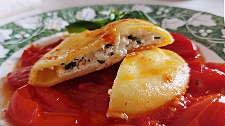 La pasta ripiena fatta in casa, tradizionale e saporita, con un sughetto fresco di pomodori e basilico: le chienulelle ricotta e menta sono servite!