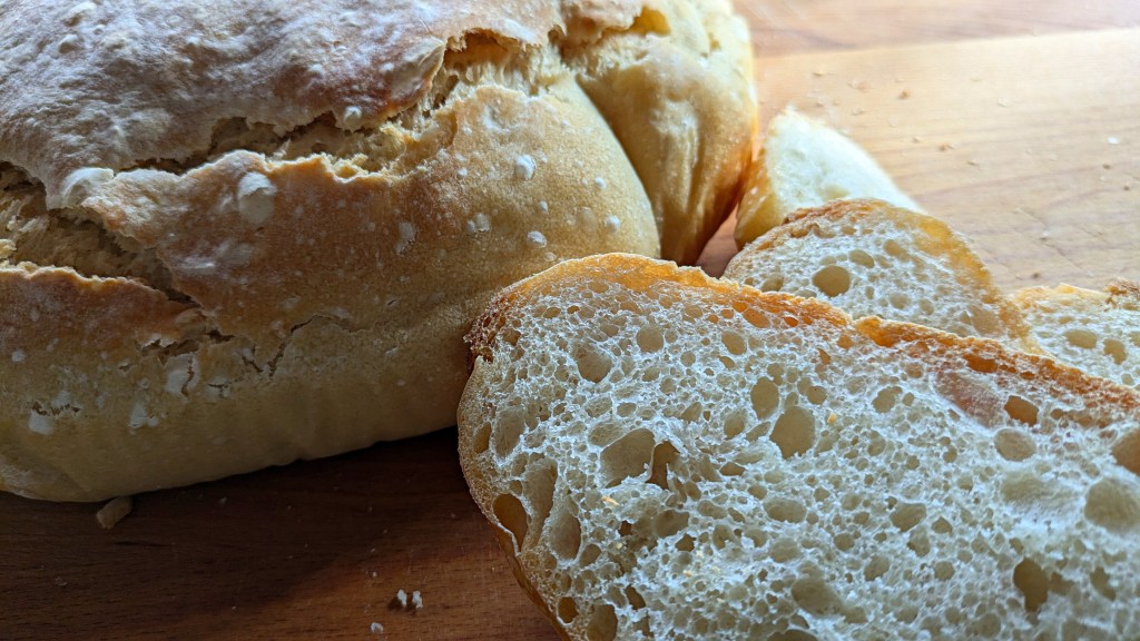 Certo mancano le grandi bolle di lievitazione e l’alveolatura gigante dei grandi pani con lievito madre.