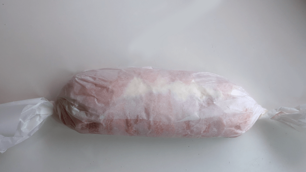 Stringete bene il rotolo, chiudete ai lati e mettete tutto in una teglia.