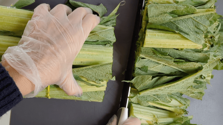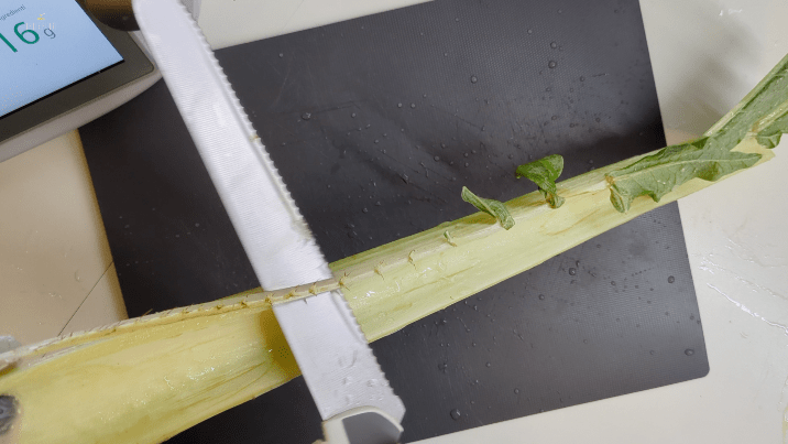 E attenzione alla sbianchitura: al momento della lessatura aggiungete un po’ di farina nell’acqua, altrimenti potrete incappare in un viraggio del colore dei cardi verso il verde smeraldo, continuano ad essere commestibili, ma sono inquietanti da guardare. 👀